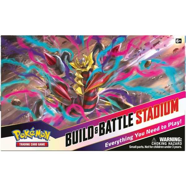 Build two decks with a friend—and then play right away! This Pokémon TCG: Sword & Shield—Lost Origin Build & Battle Stadium contains a massive set of cards, including two Build & Battle Boxes. Each Build & Battle Box contains four booster packs and a 40-card deck that includes an exclusive foil card. You can play these decks right out of the box, or enhance them with cards from the booster packs. Get ready to face your opponents in the Build & Battle Stadium!